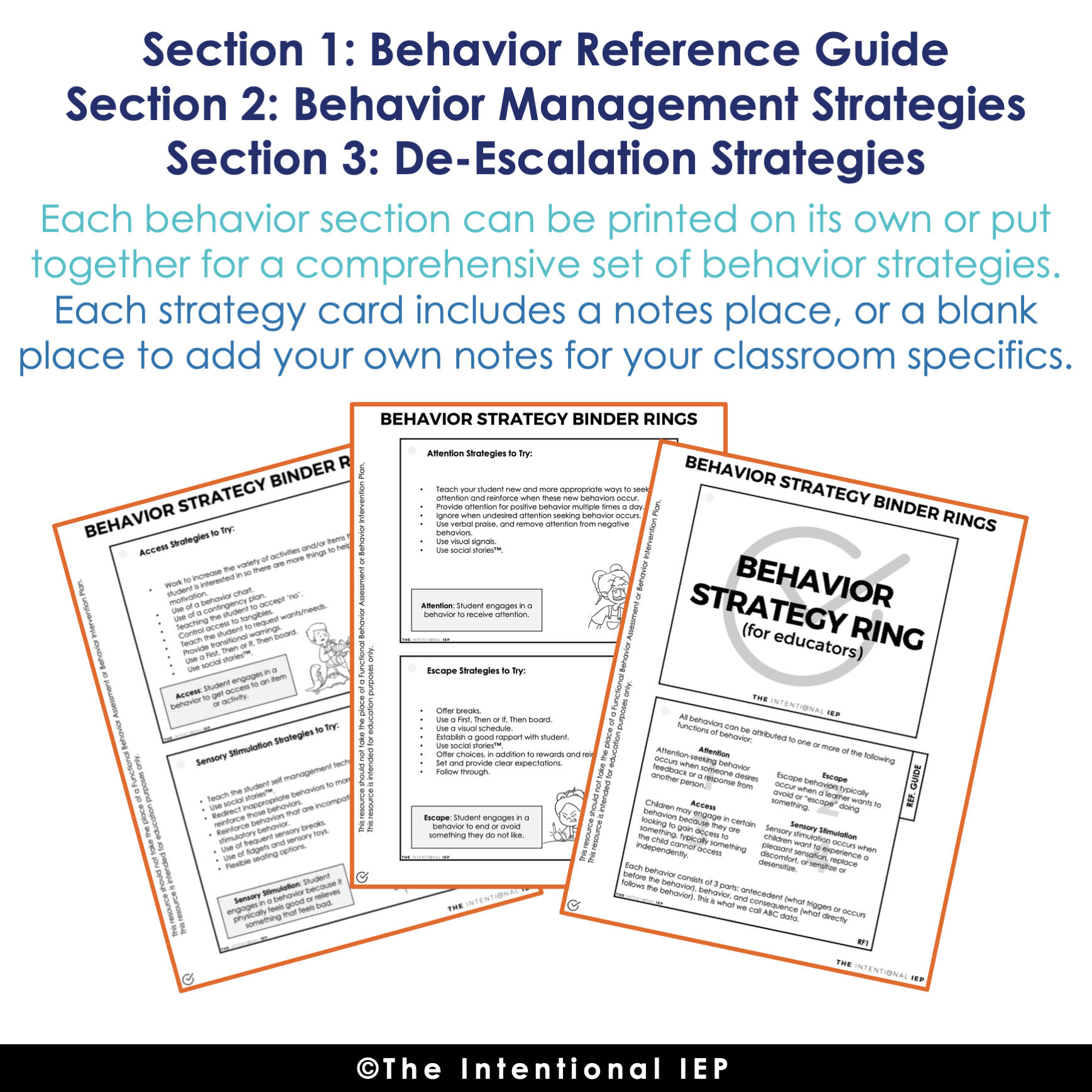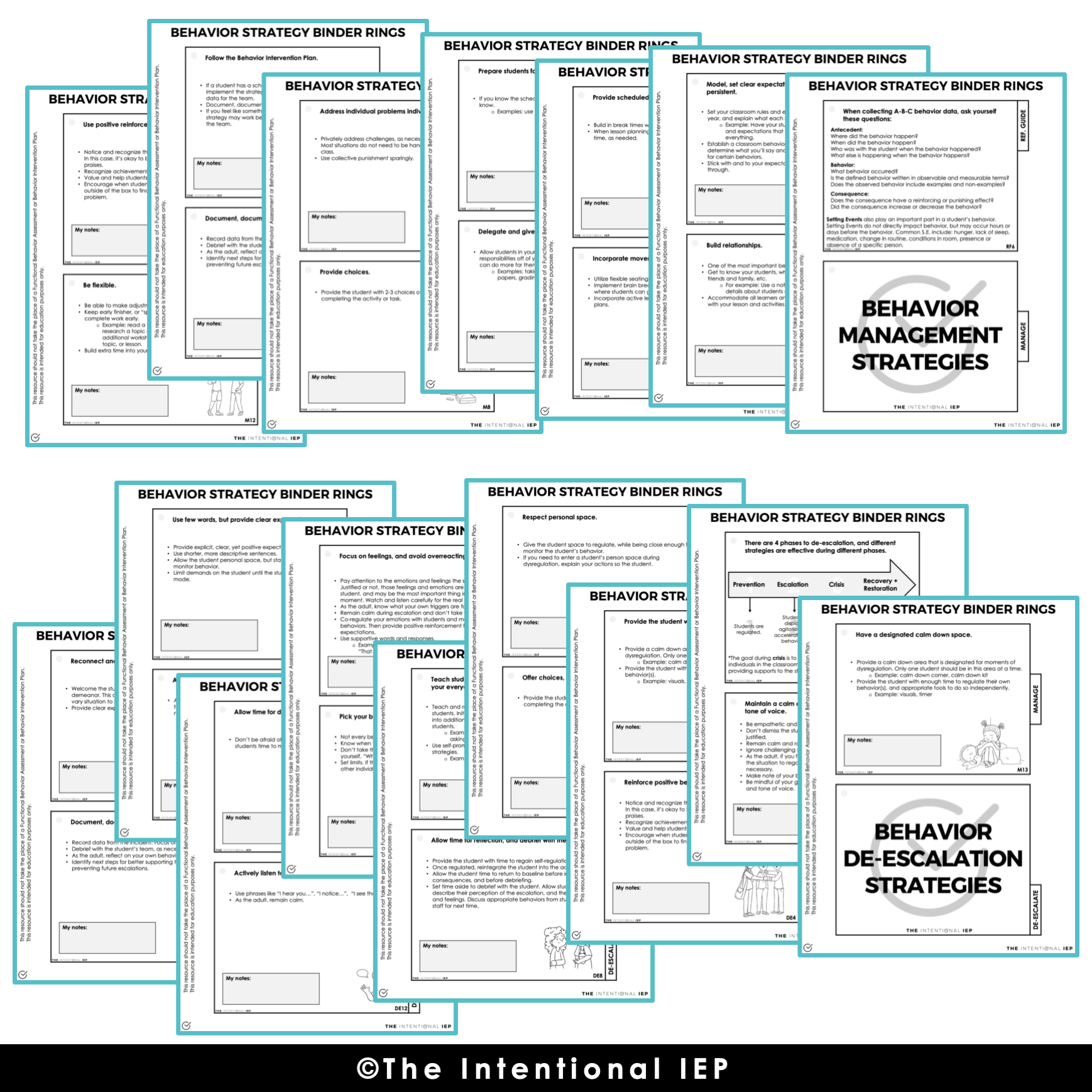 - Section 2: Behavior Management Strategies – 13 ring pages (13 strategy pages)